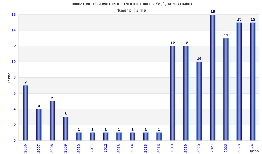 | Anno | Firme | Importi | Media | Naz. | Reg. | Prov. | Comu. |