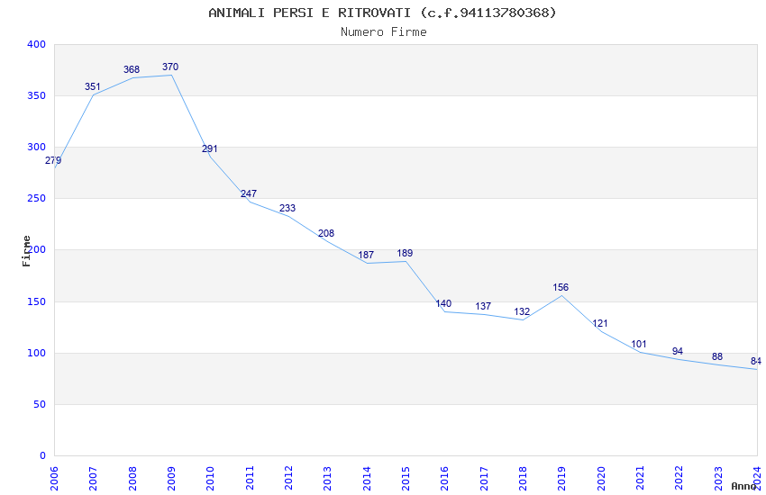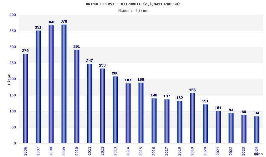 | Anno | Firme | Importi | Media | Naz. | Reg. | Prov. | Comu. |