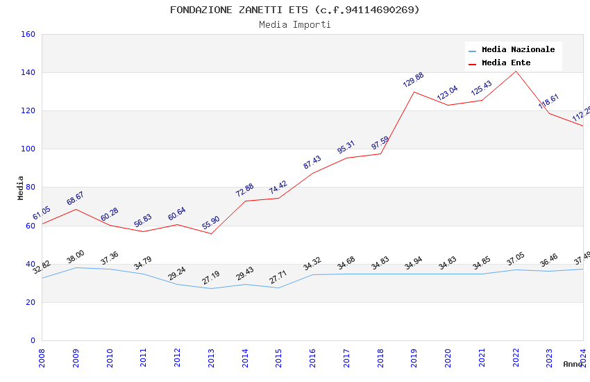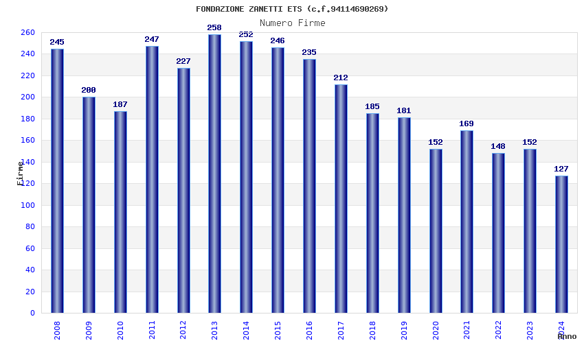 | Anno | Firme | Importi | Media | Naz. | Reg. | Prov. | Comu. |
