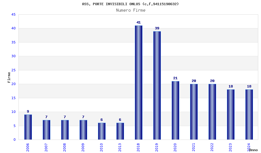 | 2018 | 41 | 1.597,76 | 38,97 | 27.314 | 1.537 | 776 | 345 |