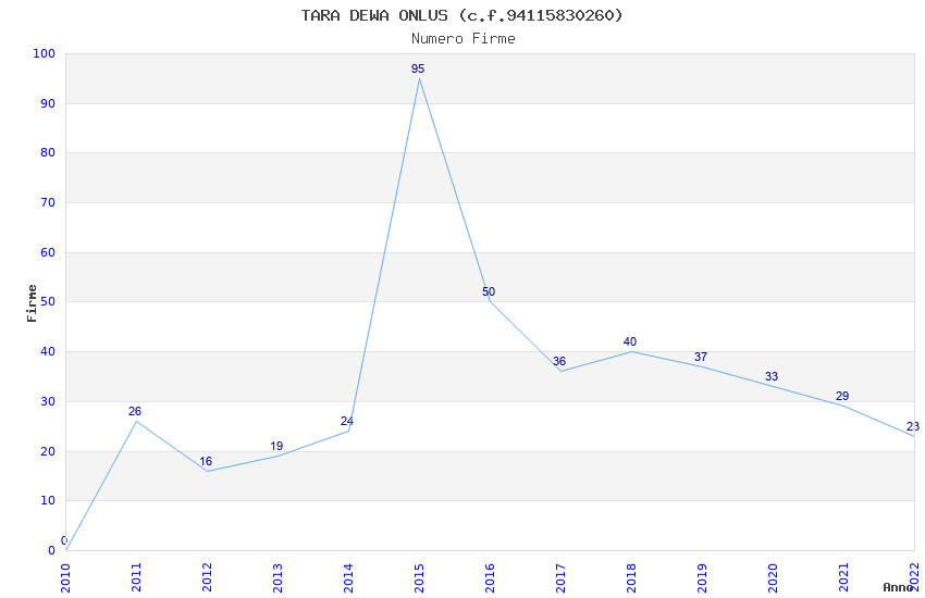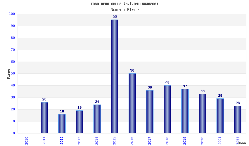 | Anno | Firme | Importi | Media | Naz. | Reg. | Prov. | Comu. |