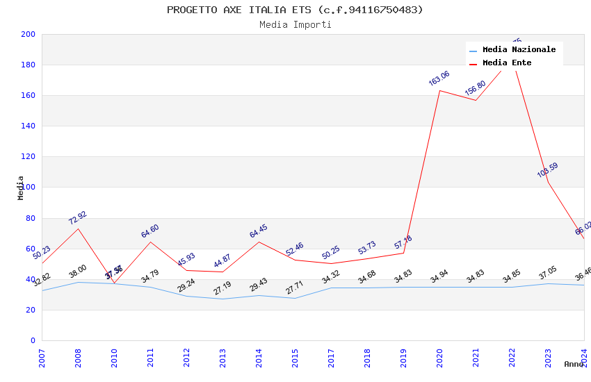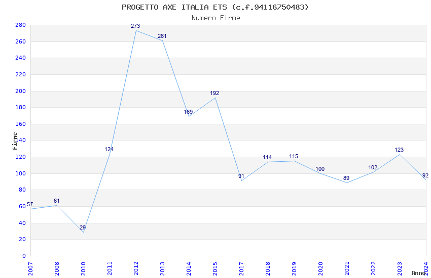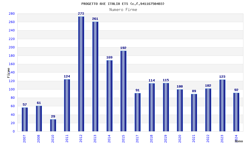 | Anno | Firme | Importi | Media | Naz. | Reg. | Prov. | Comu. |