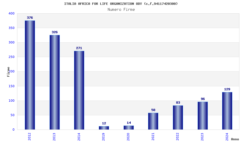 | Anno | Firme | Importi | Media | Naz. | Reg. | Prov. | Comu. |