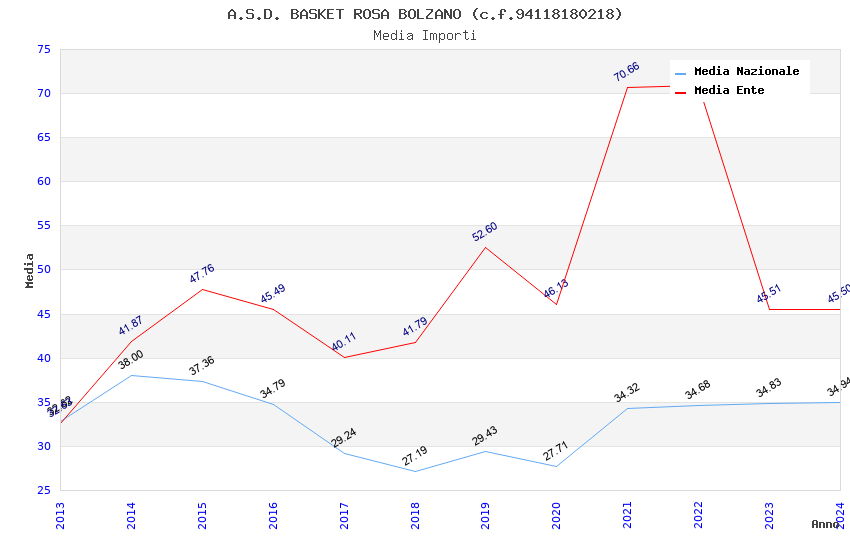 | Anno | Firme | Importi | Media | Naz. | Reg. | Prov. | Comu. |