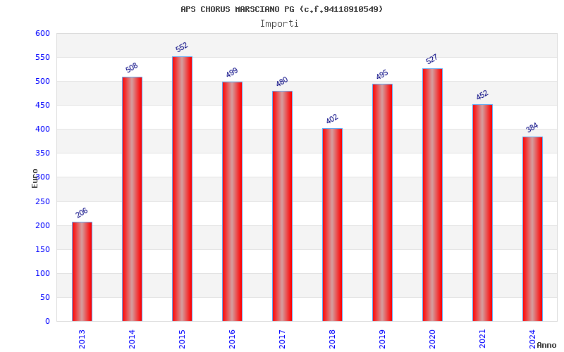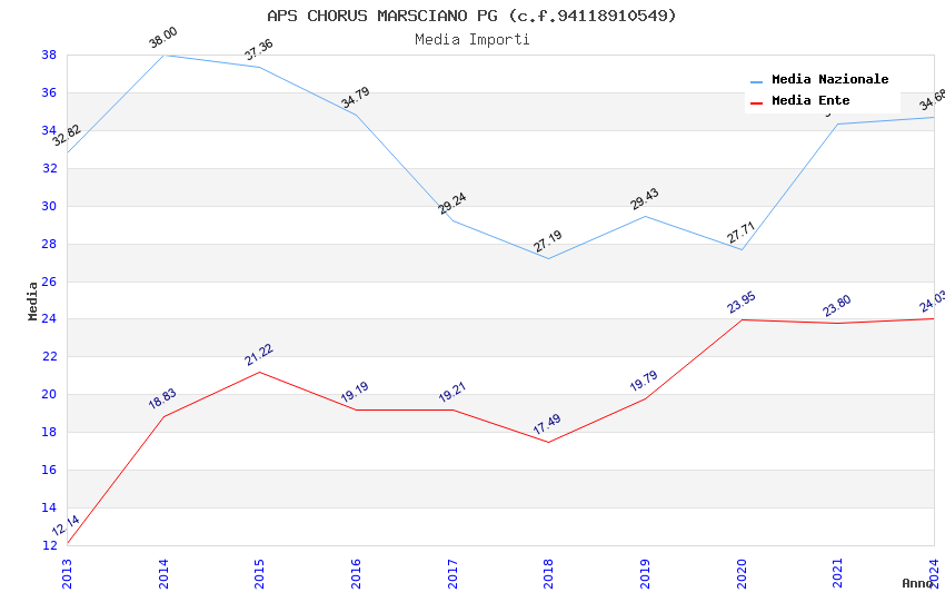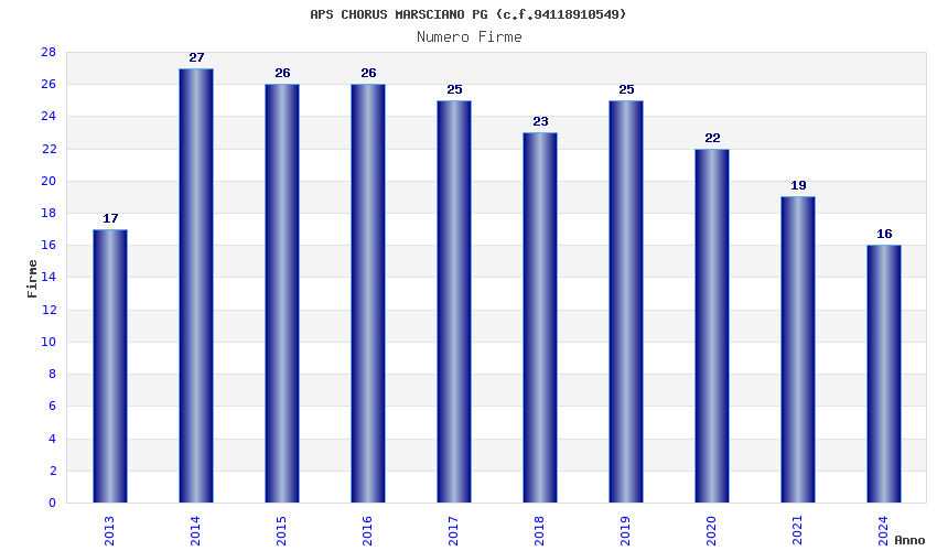| Anno | Firme | Importi | Media | Naz. | Reg. | Prov. | Comu. |