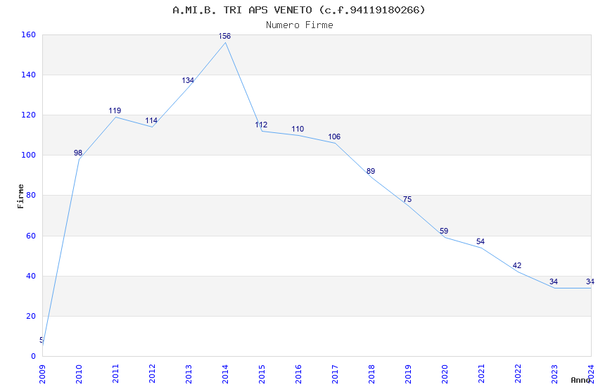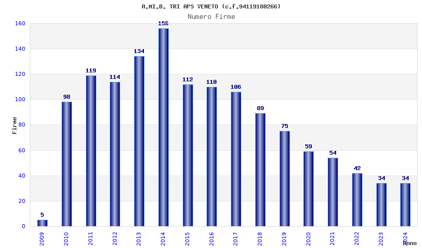 | Anno | Firme | Importi | Media | Naz. | Reg. | Prov. | Comu. |