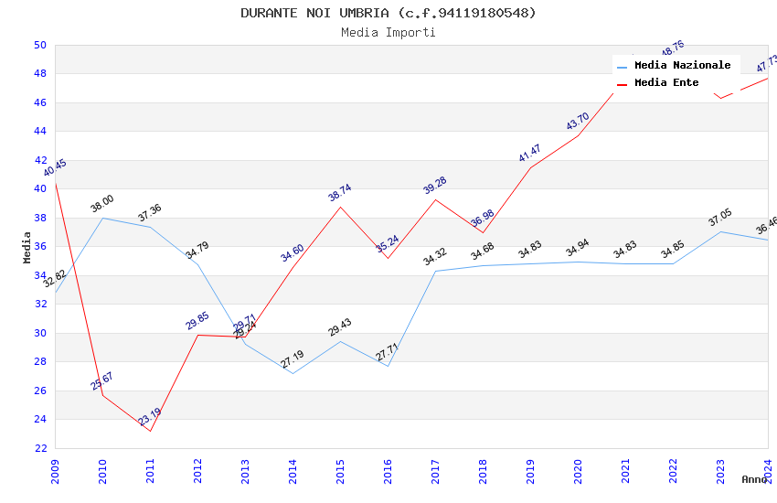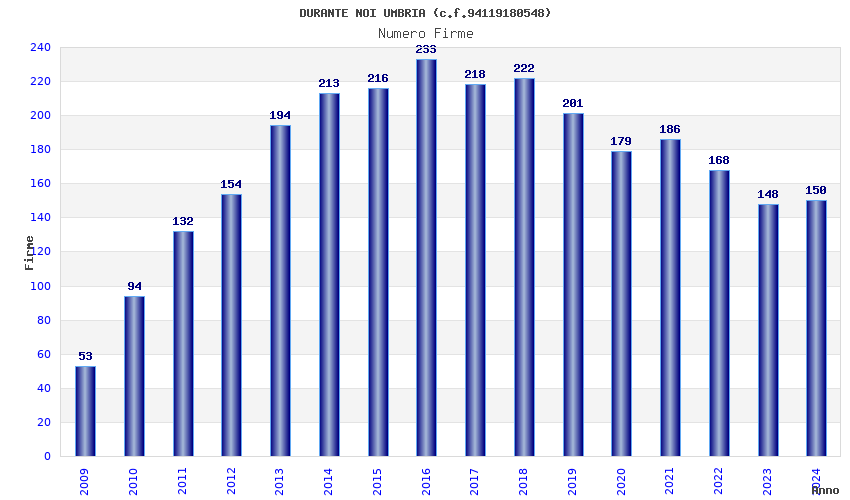 | Anno | Firme | Importi | Media | Naz. | Reg. | Prov. | Comu. |