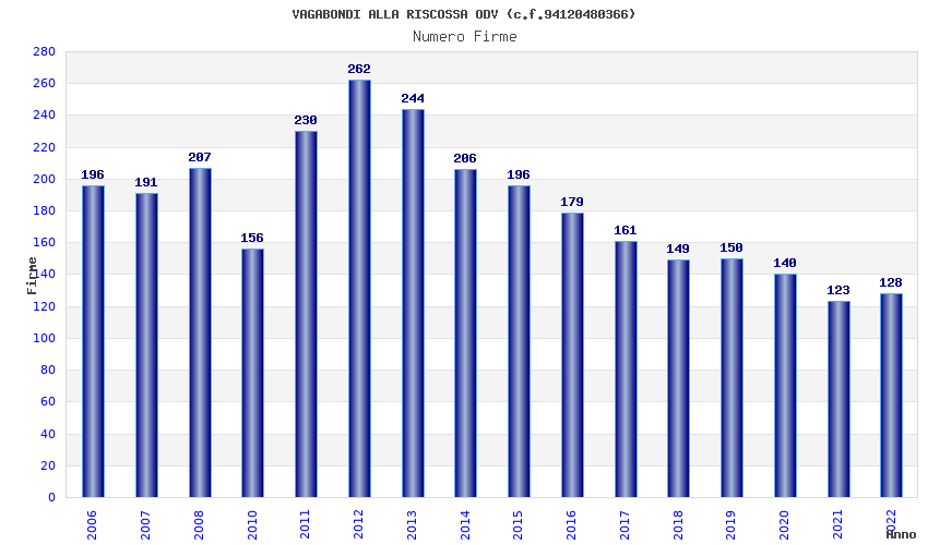 | Anno | Firme | Importi | Media | Naz. | Reg. | Prov. | Comu. |