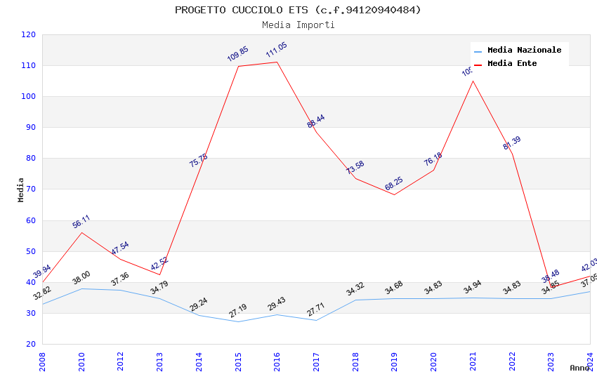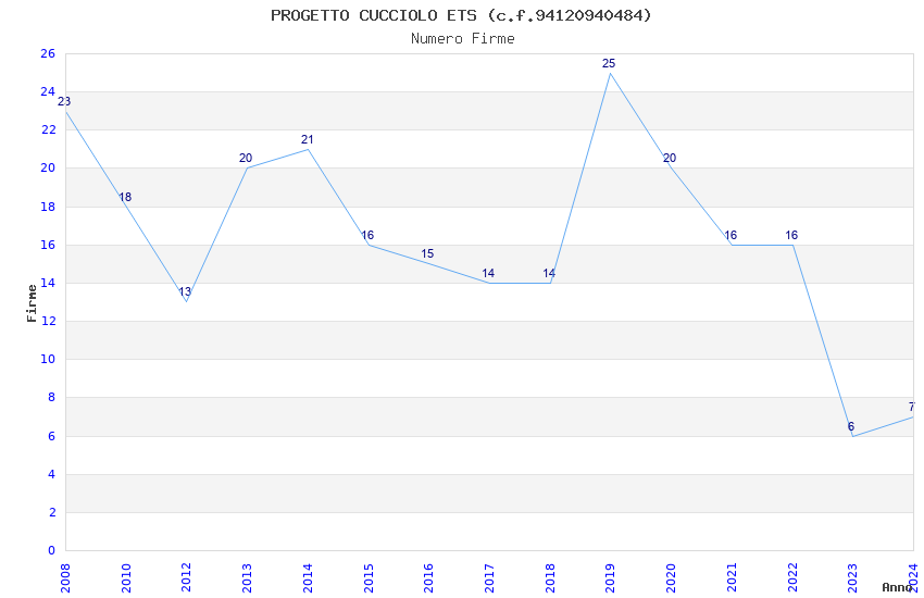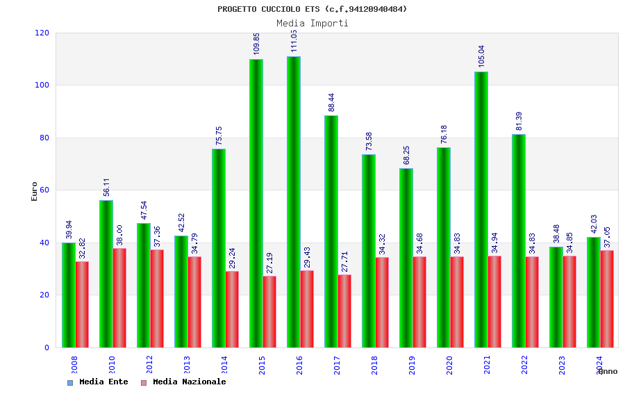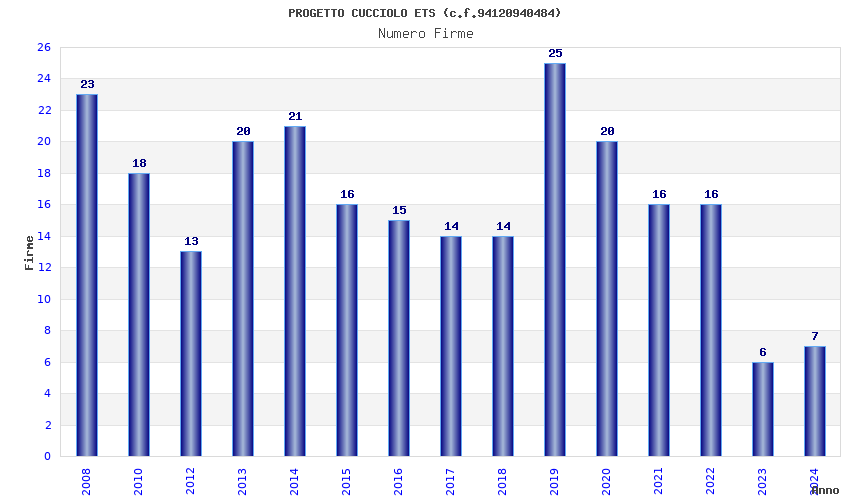 | Anno | Firme | Importi | Media | Naz. | Reg. | Prov. | Comu. |