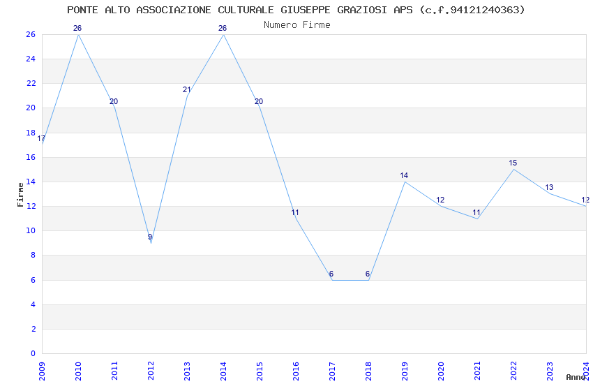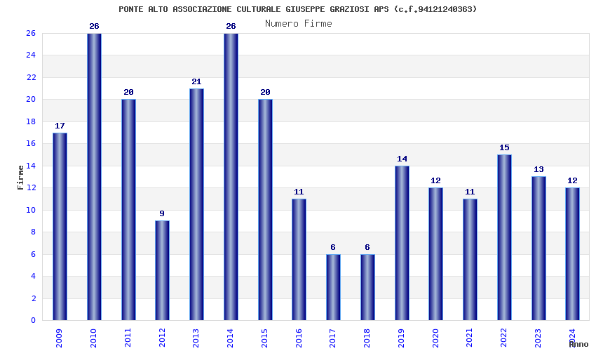 | Anno | Firme | Importi | Media | Naz. | Reg. | Prov. | Comu. |