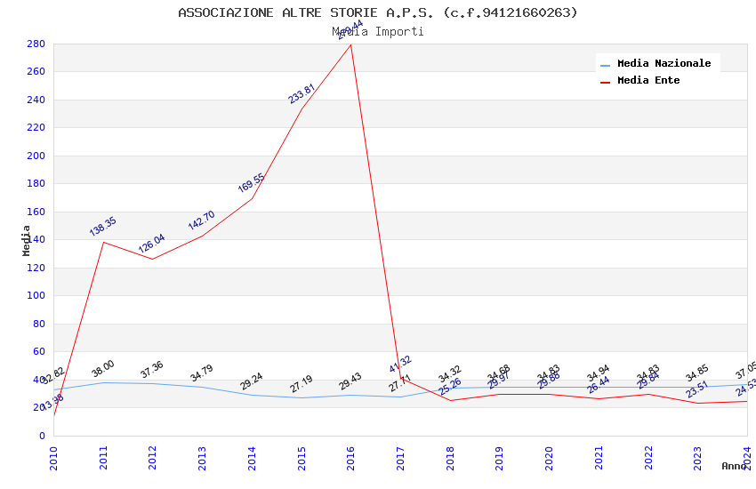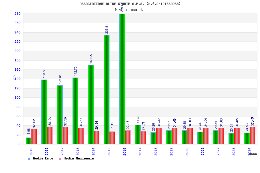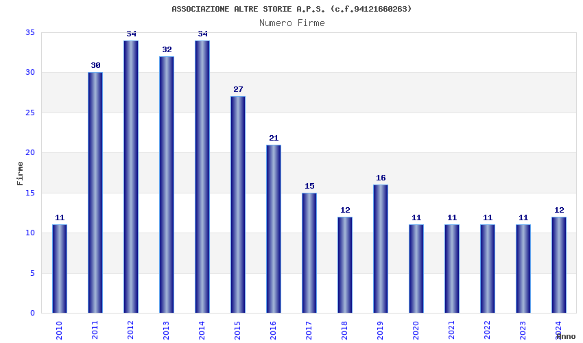 | Anno | Firme | Importi | Media | Naz. | Reg. | Prov. | Comu. |