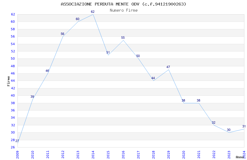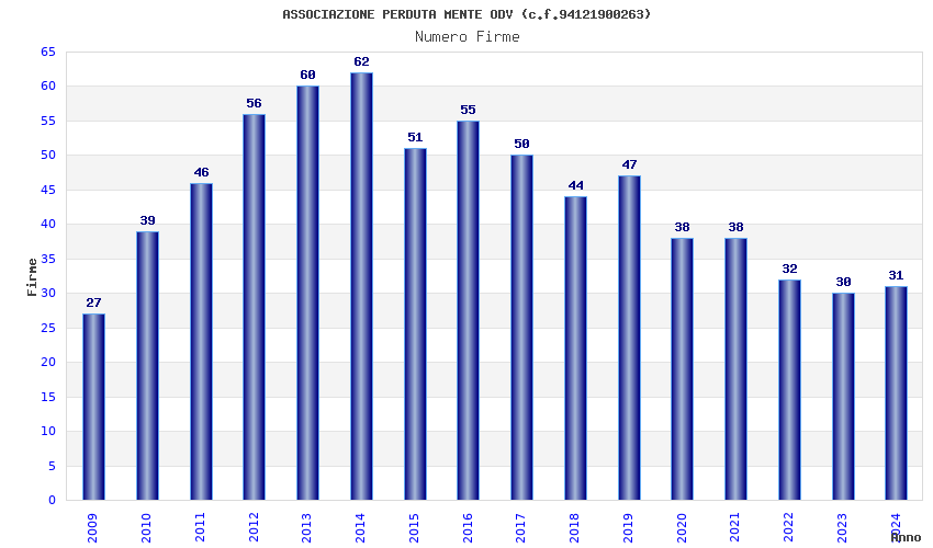 | 2014 | 62 | 1.677,59 | 27,06 | 24.145 | 2.295 | 372 | 8 |