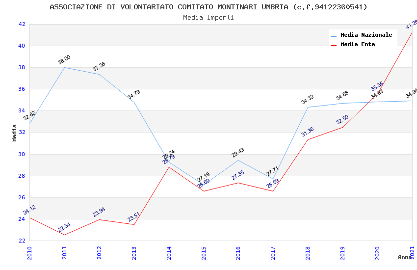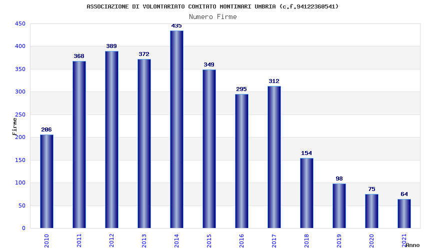 | Anno | Firme | Importi | Media | Naz. | Reg. | Prov. | Comu. |