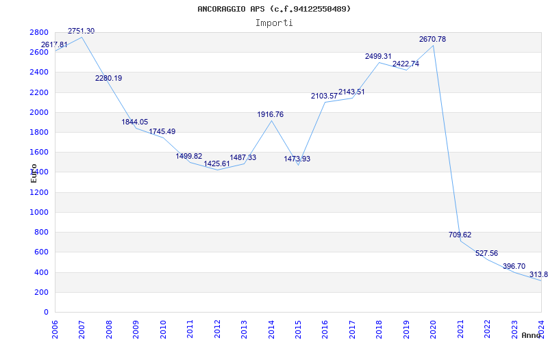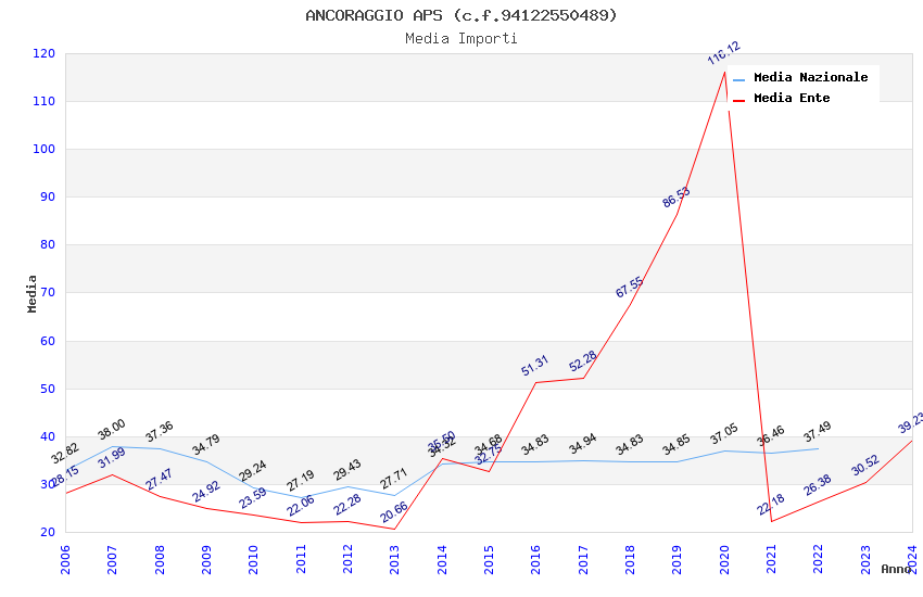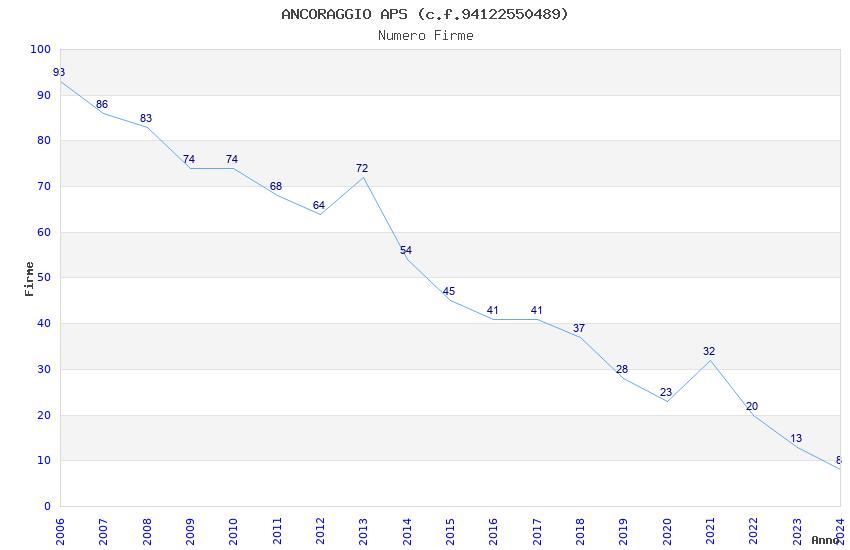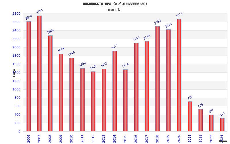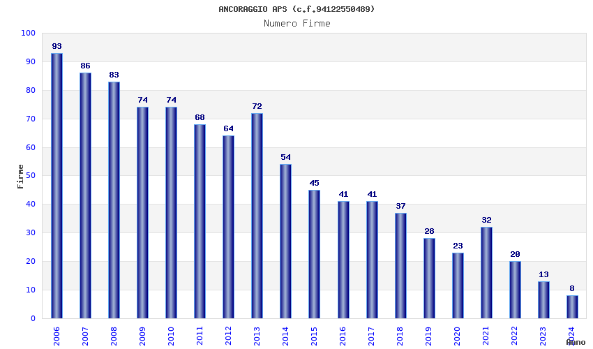 | Anno | Firme | Importi | Media | Naz. | Reg. | Prov. | Comu. |