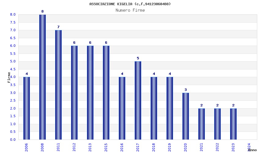 | Anno | Firme | Importi | Media | Naz. | Reg. | Prov. | Comu. |