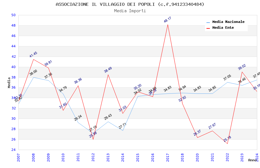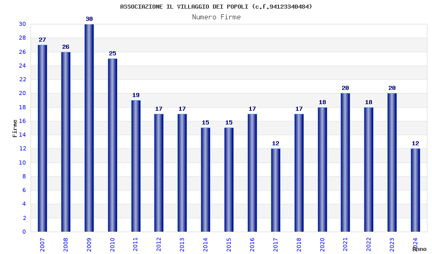 | Anno | Firme | Importi | Media | Naz. | Reg. | Prov. | Comu. |