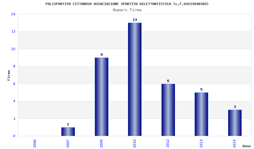 | Anno | Firme | Importi | Media | Naz. | Reg. | Prov. | Comu. |