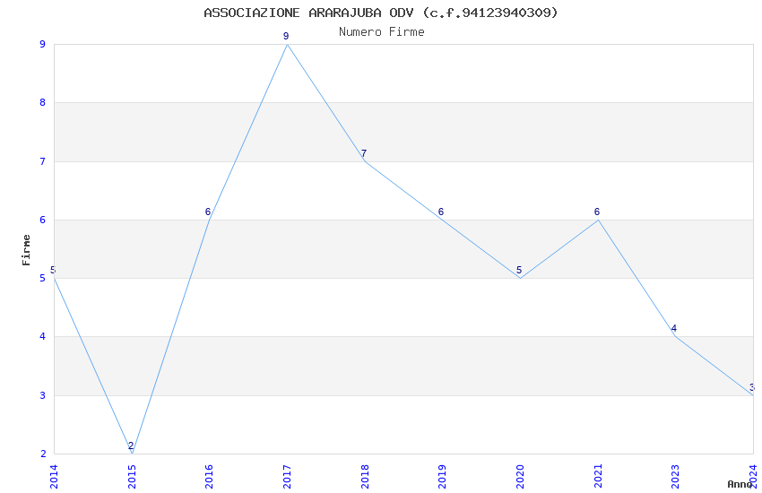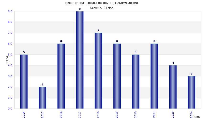 | Anno | Firme | Importi | Media | Naz. | Reg. | Prov. | Comu. |