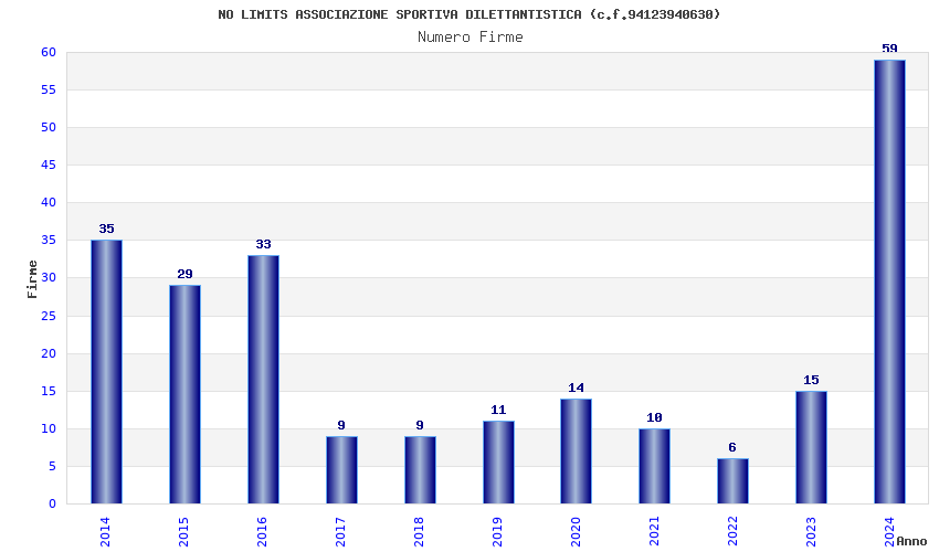 | Anno | Firme | Importi | Media | Naz. | Reg. | Prov. | Comu. |