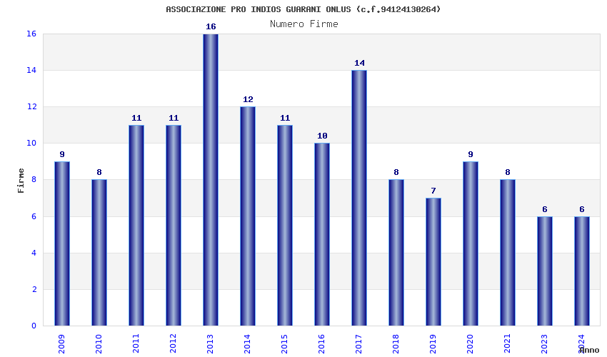 | Anno | Firme | Importi | Media | Naz. | Reg. | Prov. | Comu. |