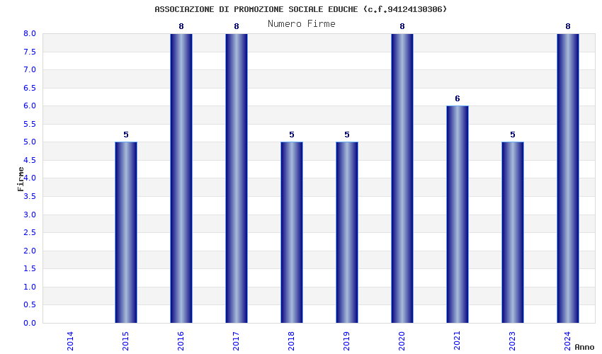 | Anno | Firme | Importi | Media | Naz. | Reg. | Prov. | Comu. |