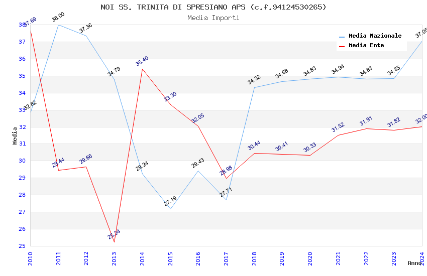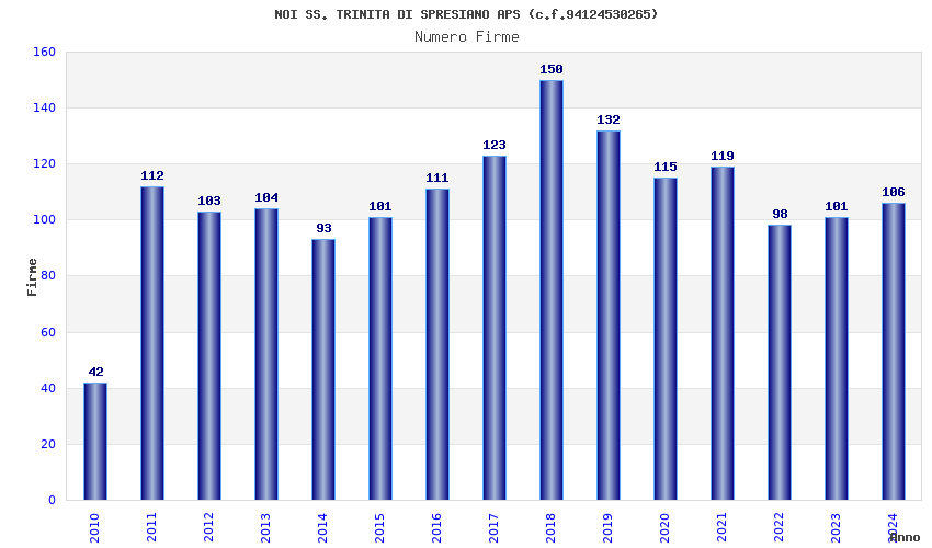 | Anno | Firme | Importi | Media | Naz. | Reg. | Prov. | Comu. |