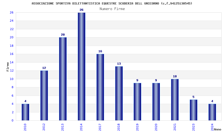| Anno | Firme | Importi | Media | Naz. | Reg. | Prov. | Comu. |