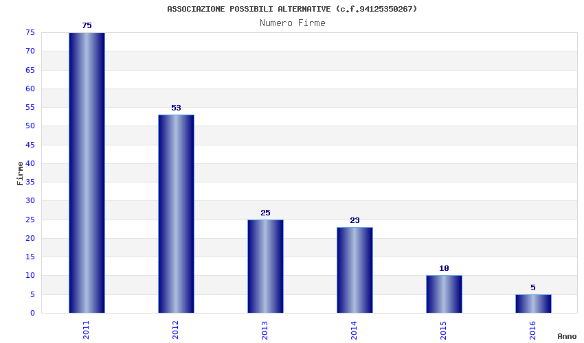 | Anno | Firme | Importi | Media | Naz. | Reg. | Prov. | Comu. |