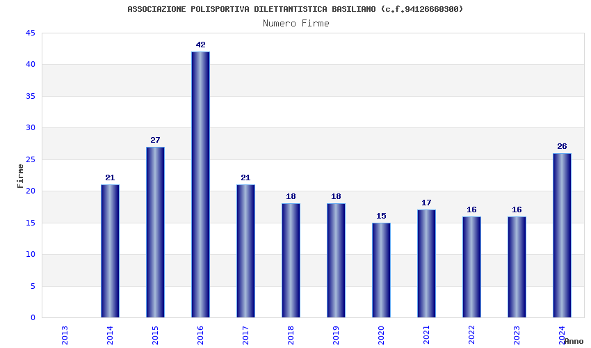 | 2016 | 42 | 1.076,33 | 25,63 | 31.860 | 872 | 389 | 3 |