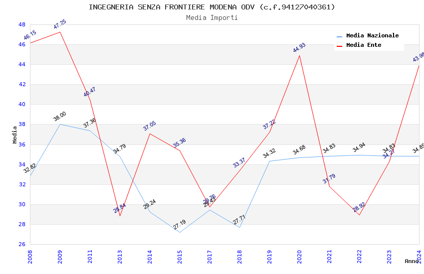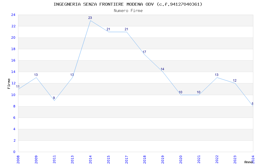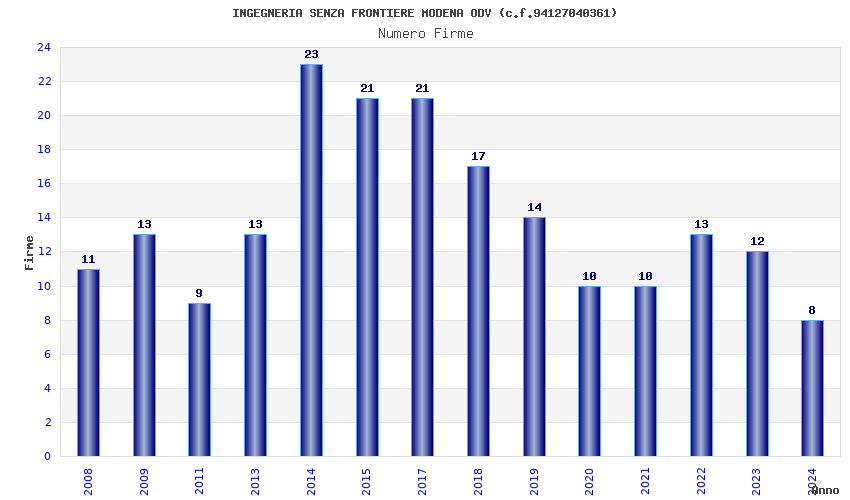 | Anno | Firme | Importi | Media | Naz. | Reg. | Prov. | Comu. |