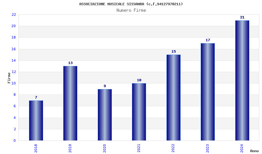 | Anno | Firme | Importi | Media | Naz. | Reg. | Prov. | Comu. |