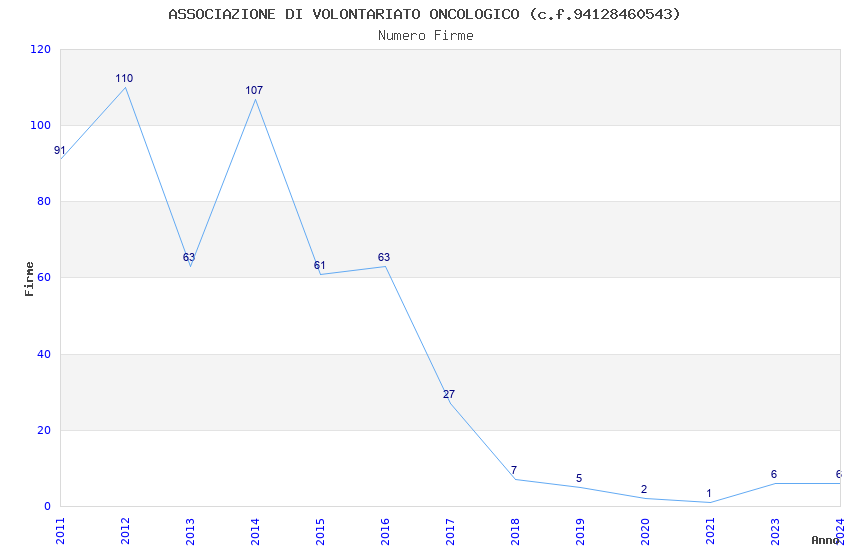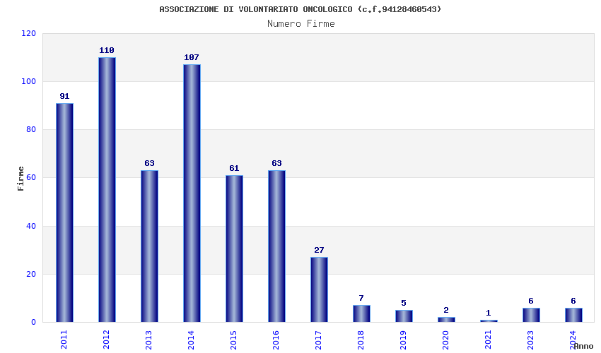 | Anno | Firme | Importi | Media | Naz. | Reg. | Prov. | Comu. |