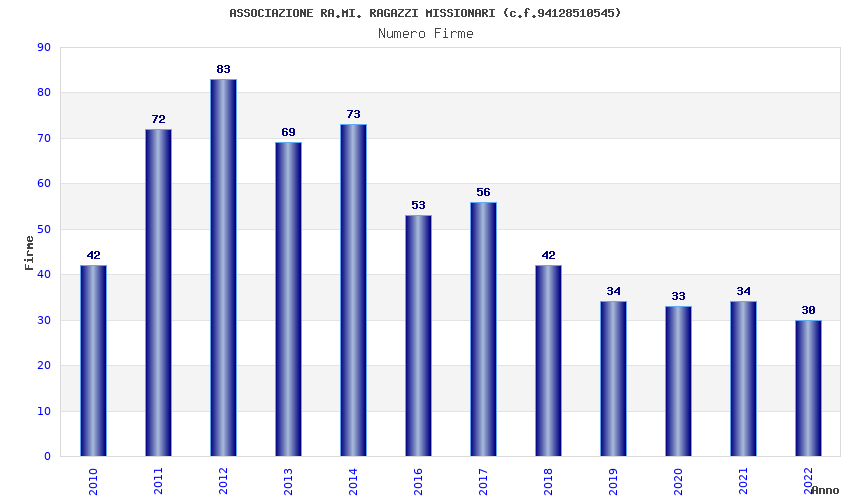 Anno Firme Importi Media Naz. Reg. Prov. Comu.