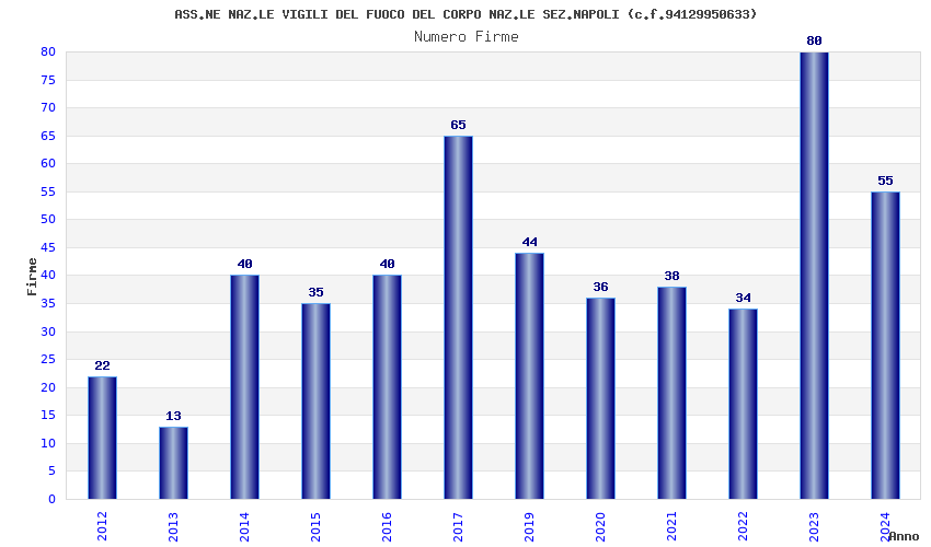 | Anno | Firme | Importi | Media | Naz. | Reg. | Prov. | Comu. |