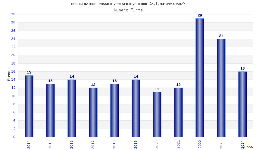 | Anno | Firme | Importi | Media | Naz. | Reg. | Prov. | Comu. |