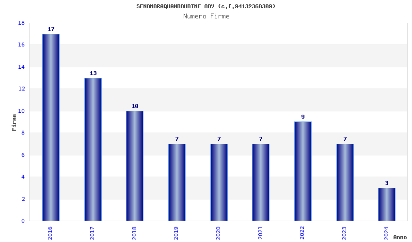 | Anno | Firme | Importi | Media | Naz. | Reg. | Prov. | Comu. |