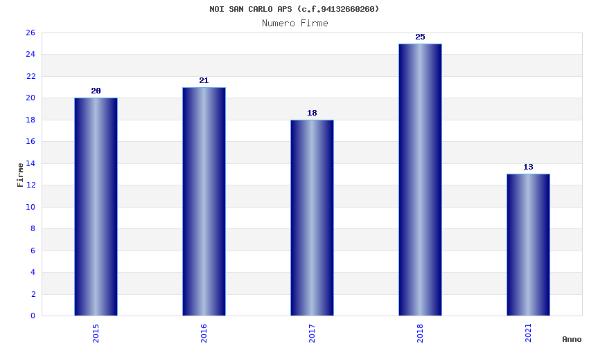| Anno | Firme | Importi | Media | Naz. | Reg. | Prov. | Comu. |