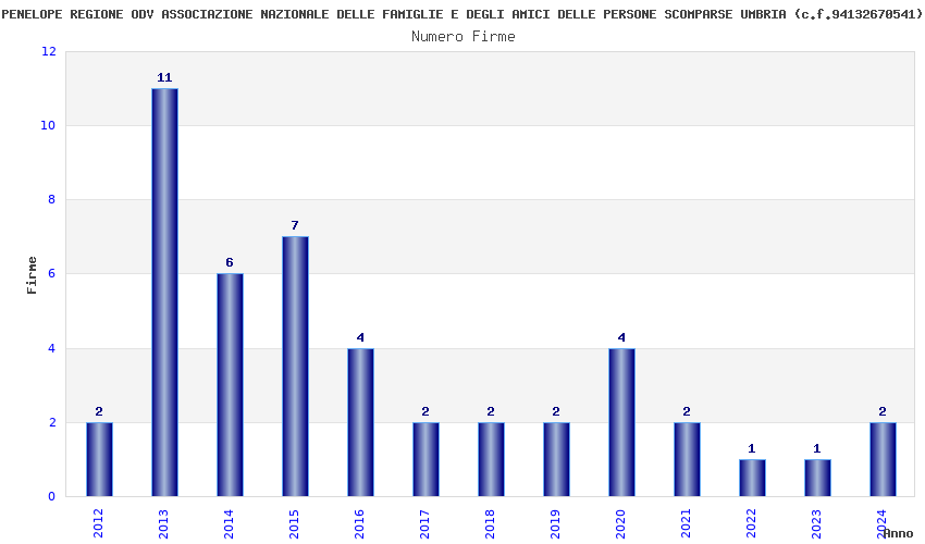 | Anno | Firme | Importi | Media | Naz. | Reg. | Prov. | Comu. |