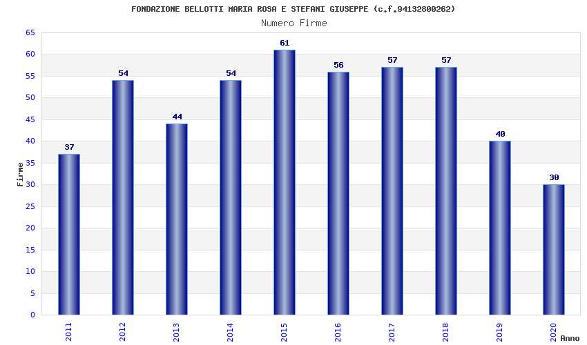 | Anno | Firme | Importi | Media | Naz. | Reg. | Prov. | Comu. |