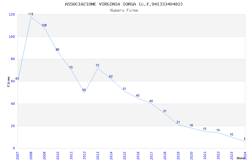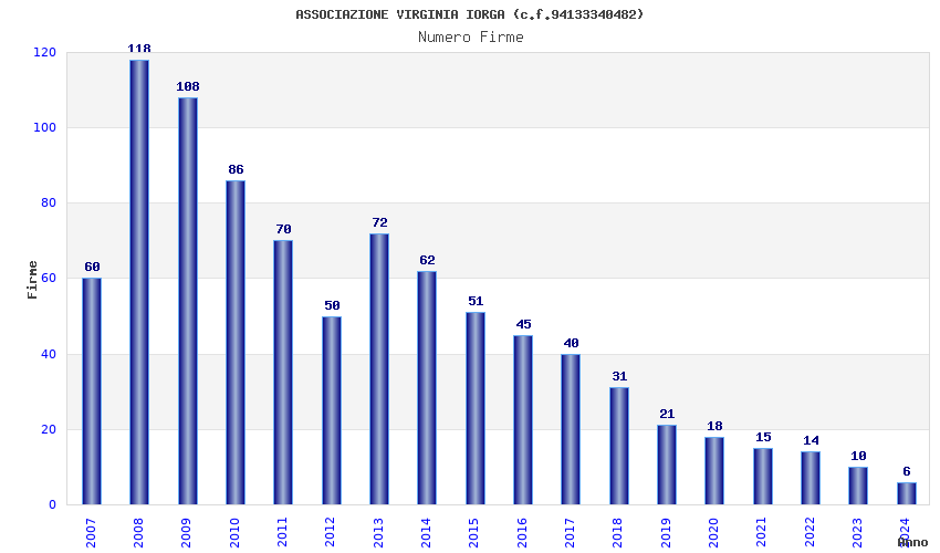 | Anno | Firme | Importi | Media | Naz. | Reg. | Prov. | Comu. |