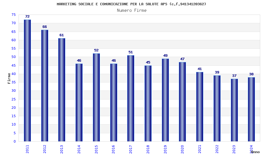 | Anno | Firme | Importi | Media | Naz. | Reg. | Prov. | Comu. |