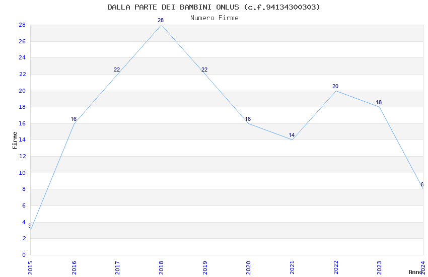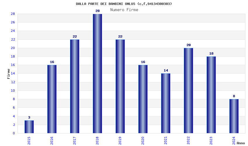 | Anno | Firme | Importi | Media | Naz. | Reg. | Prov. | Comu. |