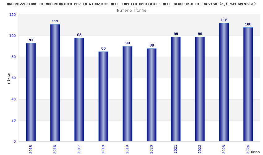 | Anno | Firme | Importi | Media | Naz. | Reg. | Prov. | Comu. |