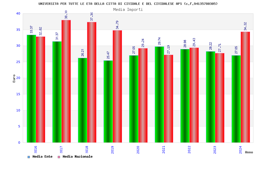 | Anno | Firme | Importi | Media | Naz. | Reg. | Prov. | Comu. |