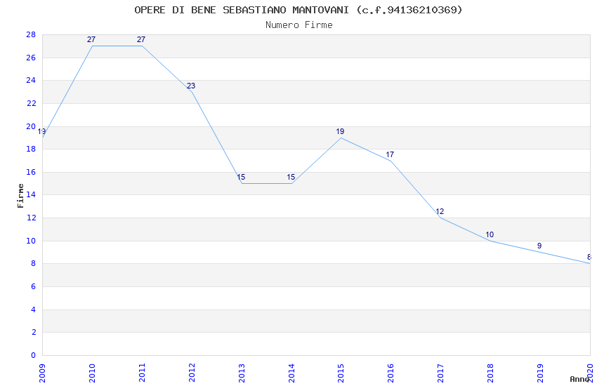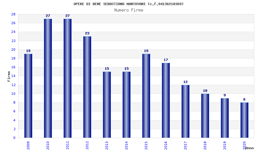 | Anno | Firme | Importi | Media | Naz. | Reg. | Prov. | Comu. |