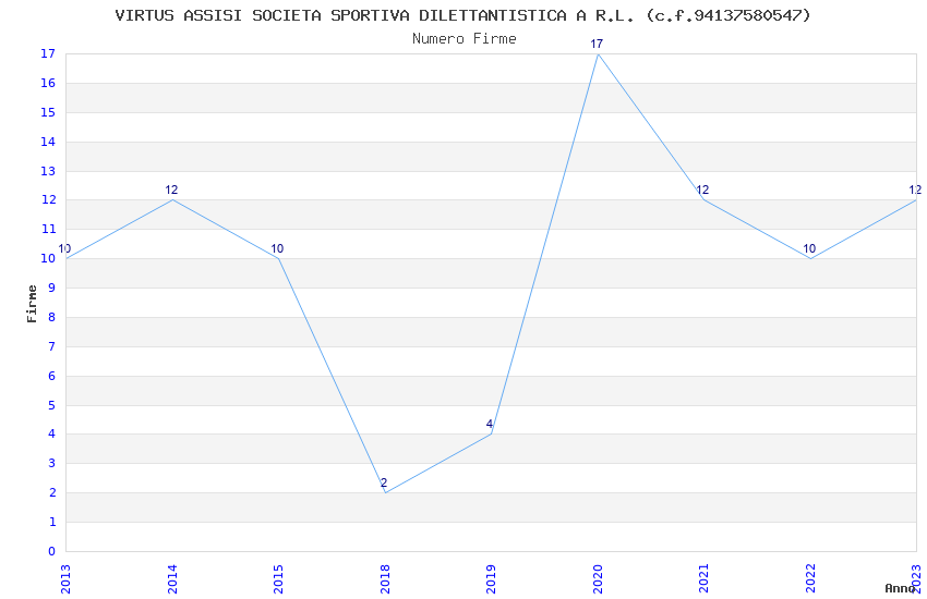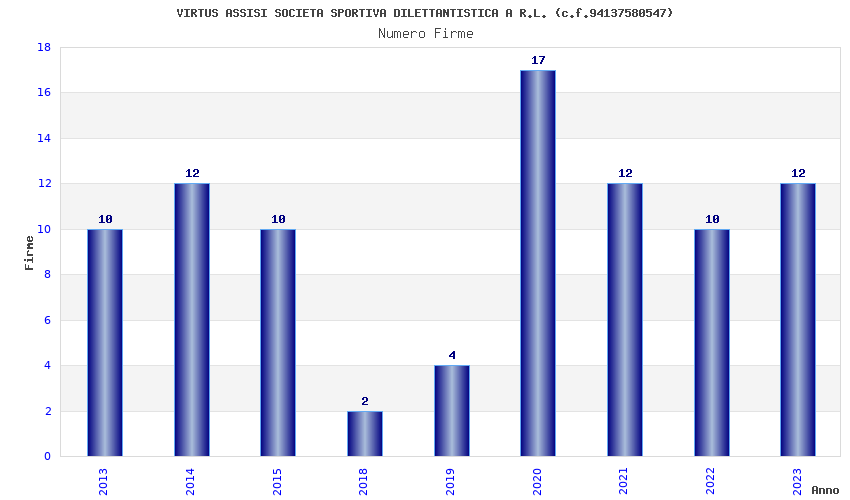 | Anno | Firme | Importi | Media | Naz. | Reg. | Prov. | Comu. |