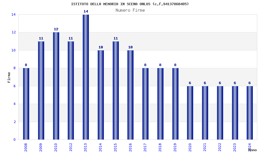| Anno | Firme | Importi | Media | Naz. | Reg. | Prov. | Comu. |