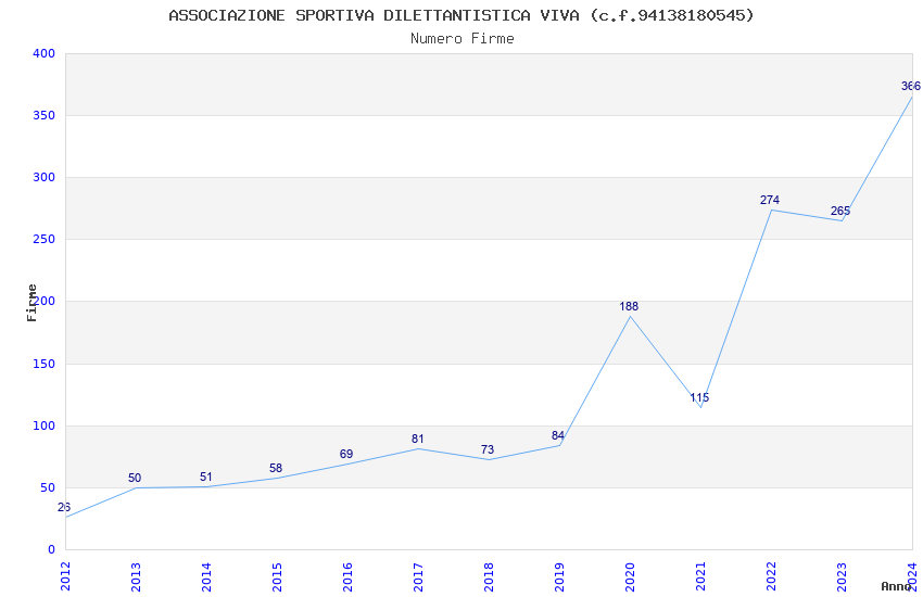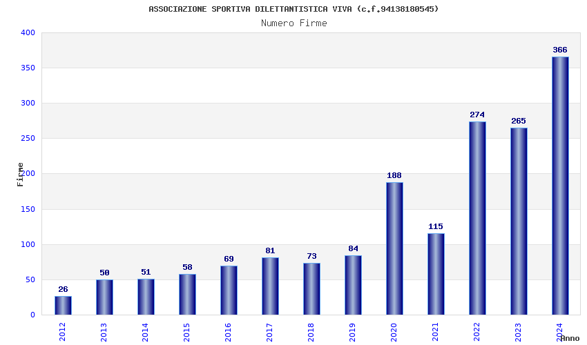 | Anno | Firme | Importi | Media | Naz. | Reg. | Prov. | Comu. |
