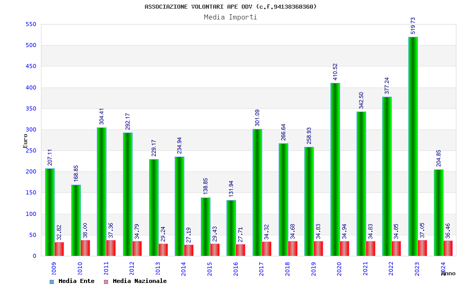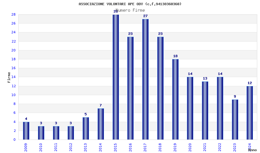 | Anno | Firme | Importi | Media | Naz. | Reg. | Prov. | Comu. |