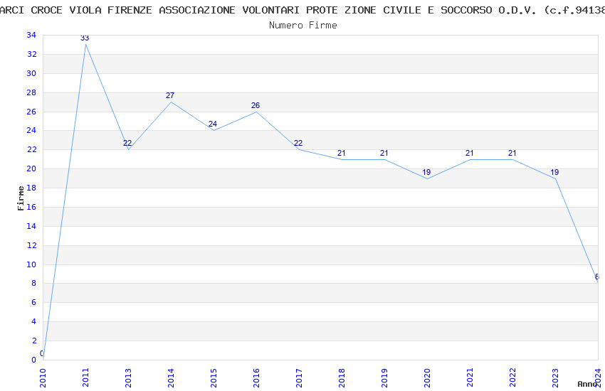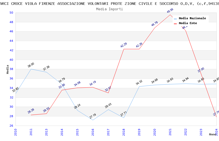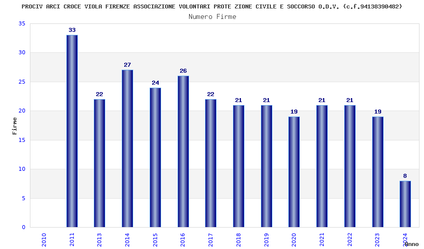 | Anno | Firme | Importi | Media | Naz. | Reg. | Prov. | Comu. |